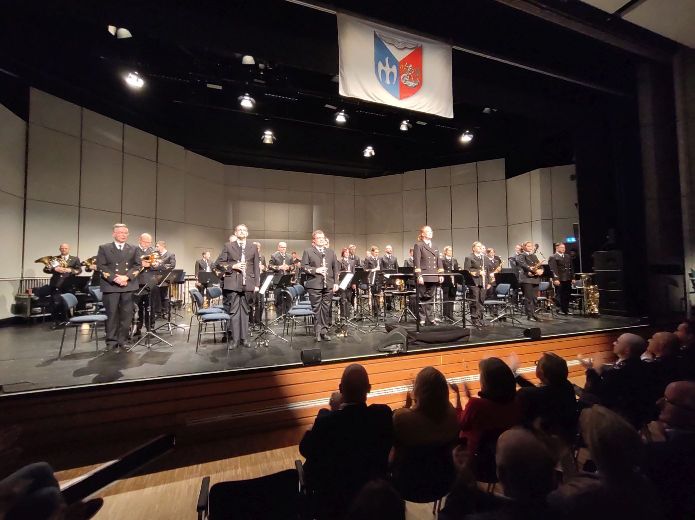 Kapitänleutnant Inga Hilsberg hatte hierfür ein Programm erstellt, das dieses Thema von verschiedenen Seiten musikalisch beleuchtete. Mit dabei waren die „Symphony of Freedom“ von Thomas Doss und „Cabaret“ (John Kander), das bekanntlich in der Zeit des sich anbahnenden NS-Regimes spielt. Neben dem Thema Frieden zog sich auch „Freiheit“ als zweites Motiv durch das Konzert. Für das Publikum war das Medley zum Mauerfall 1989 sicherlich ein Highlight („Wind of Change“, „Sonderzug nach Pankow“, „Über sieben Brücken…“ und „Looking for Freedom“).